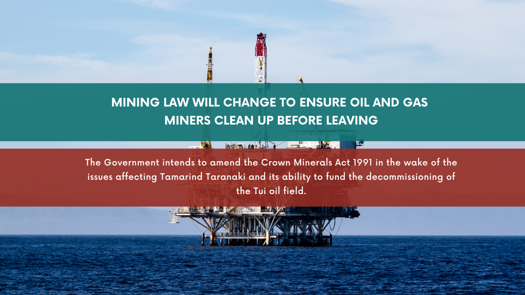 The Government intends to amend the Crown Minerals Act 1991 in the wake of the issues affecting Tamarind Taranaki and its ability to fund the decommissioning of the Tui oil…